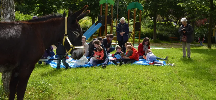 Les bibliothécaires vous invitent à écouter des histoires et à déambuler avec les ânes Quitcho et Déluge.